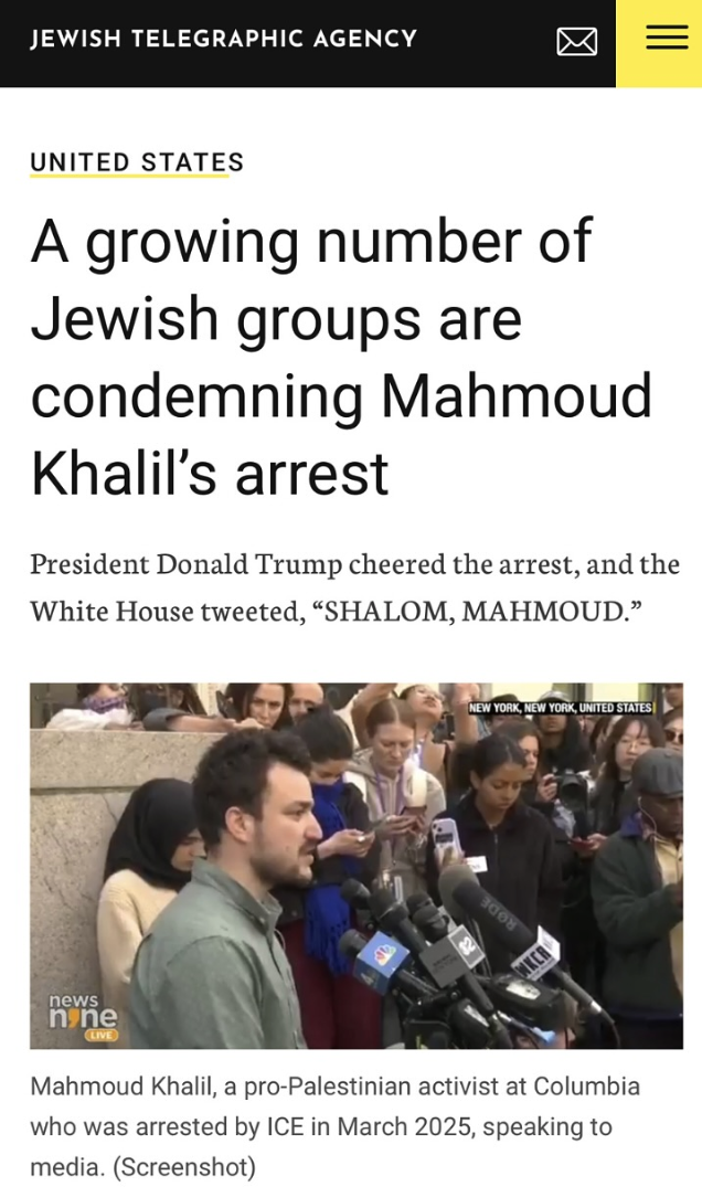 Contrary to Trump’s claims, these draconian federal actions may actually pose a threat to Jewish safety in the U.S as well. A coalition of of ten organizations representing a broad spectrum of American Jewish life – including three of the four major denominations – issued a joint statement condemning “the exploitation of our community’s real concerns about antisemitism” and rejecting “the false choice between confronting antisemitism and upholding democracy” stating “These actions do not make Jews—or any community—safer. Rather, they only make us less safe“.