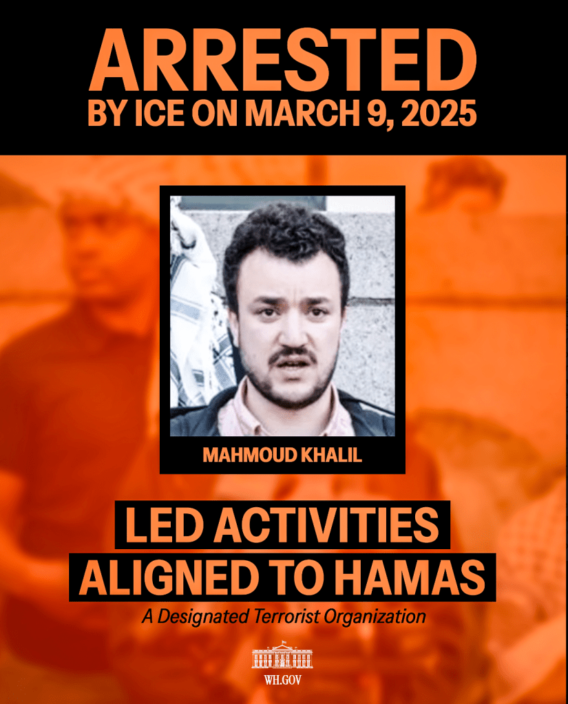 Since Mahmoud’s arrest, ICE has attempted to justify its actions by invoking a rarely-used Cold War-era immigration law that empowers the Secretary of State to revoke a person’s legal status if their presence is deemed likely to cause “adverse foreign policy consequences”. “The allegation here is not that he was breaking the law,” a White House official told the Free Press. A vague statement from the Department of Homeland Security claimed Khalil had “led activities aligned to Hamas,” —language that deliberately blurs the line between legitimate political protest and support for terrorism, and dangerously conflates criticism of Israeli policy with antisemitism. ICE later added accusations of misrepresentation on his green card application—claiming he hadn’t made clear the full extent of his diplomatic work, nor his involvement in student activism at Columbia.